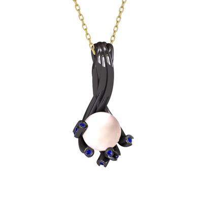 Pembe inci ve lab safir 925 ayar siyah rodyum kaplama gümüş kolye (40 cm altın rolo zincir)