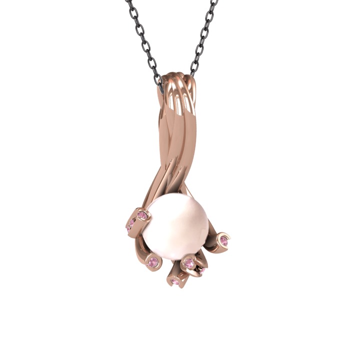 Pembe inci ve pembe kuvars 18 ayar rose altın kolye (40 cm gümüş rolo zincir)