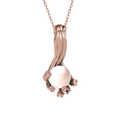 Pembe inci ve pembe kuvars 18 ayar rose altın kolye (40 cm gümüş rolo zincir)