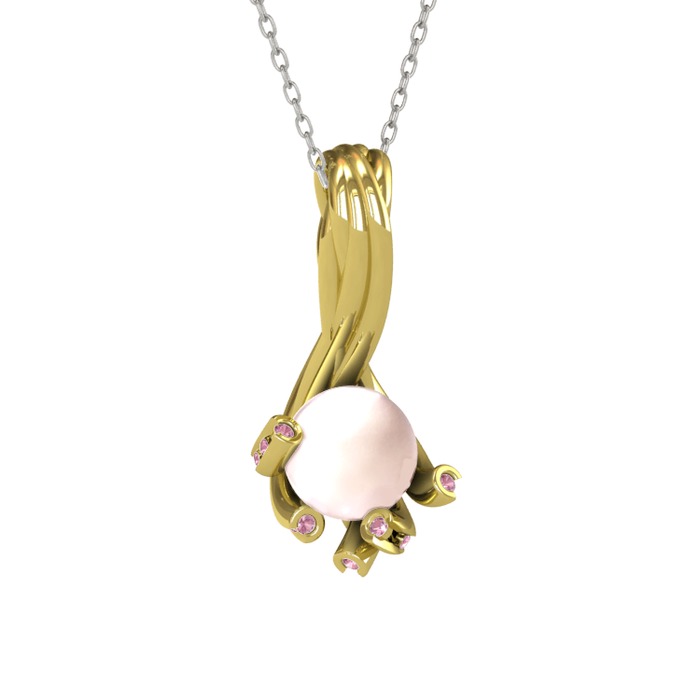 Pembe inci ve pembe kuvars 8 ayar altın kolye (40 cm gümüş rolo zincir)