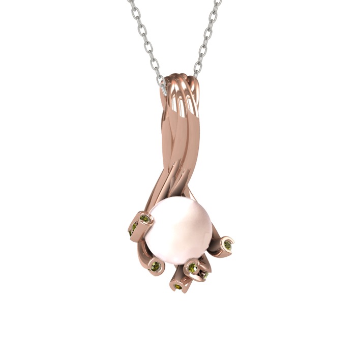 Pembe inci ve peridot 925 ayar rose altın kaplama gümüş kolye (40 cm beyaz altın rolo zincir)