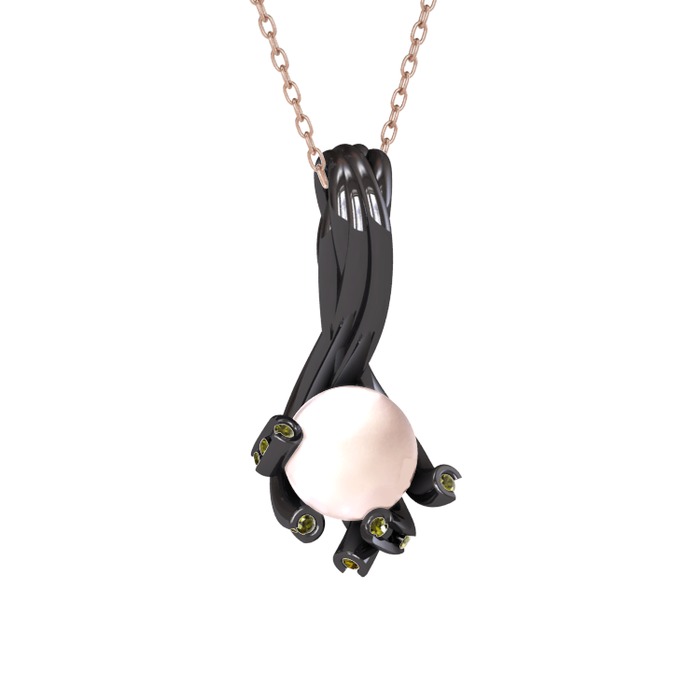 Pembe inci ve peridot 925 ayar siyah rodyum kaplama gümüş kolye (40 cm gümüş rolo zincir)