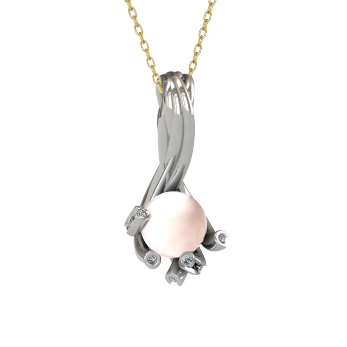 Pembe inci ve pırlanta 14 ayar beyaz altın kolye (0.225 karat, 40 cm altın rolo zincir)
