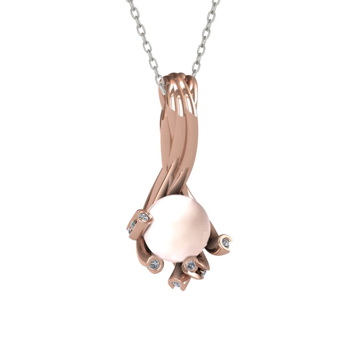 Pembe inci ve pırlanta 14 ayar rose altın kolye (0.225 karat, 40 cm gümüş rolo zincir)