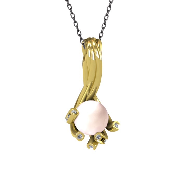 Pembe inci ve pırlanta 18 ayar altın kolye (0.225 karat, 40 cm gümüş rolo zincir)