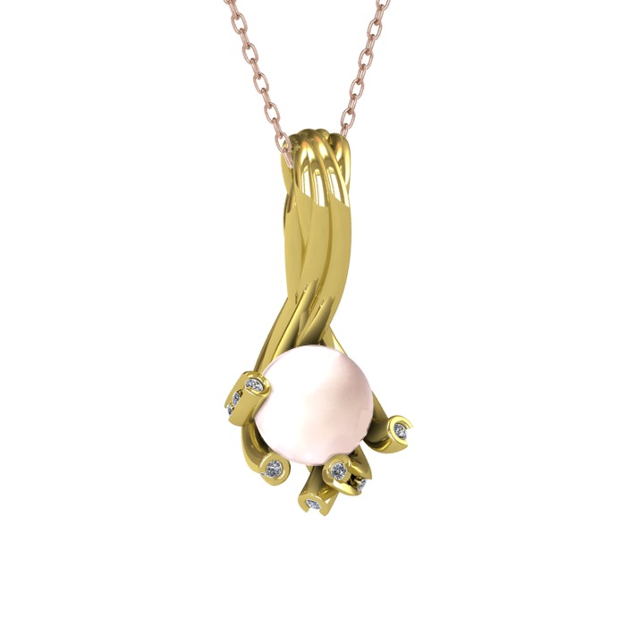 Pembe inci ve pırlanta 18 ayar altın kolye (0.225 karat, 40 cm gümüş rolo zincir)