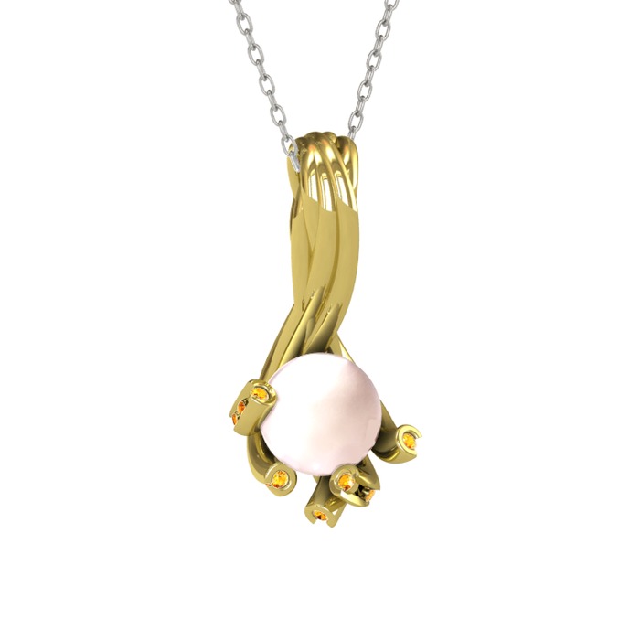 Pembe inci ve sitrin 14 ayar altın kolye (40 cm beyaz altın rolo zincir)