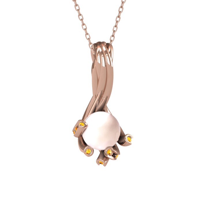 Pembe inci ve sitrin 8 ayar rose altın kolye (40 cm rose altın rolo zincir)