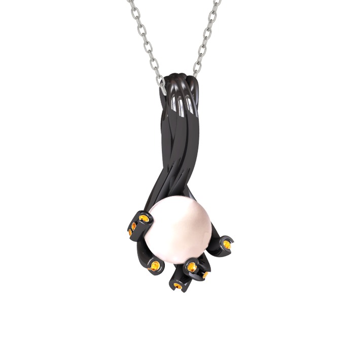 Pembe inci ve sitrin 925 ayar siyah rodyum kaplama gümüş kolye (40 cm beyaz altın rolo zincir)