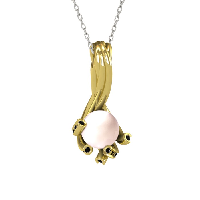 Pembe inci ve siyah zirkon 8 ayar altın kolye (40 cm beyaz altın rolo zincir)