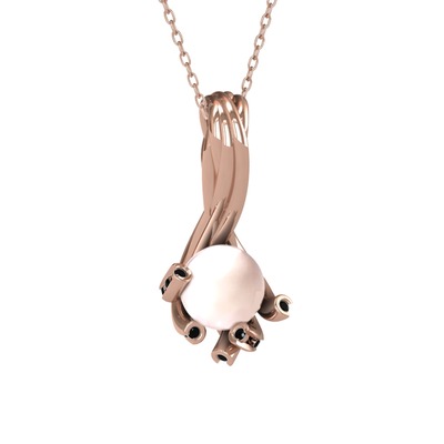 Pembe inci ve siyah zirkon 925 ayar rose altın kaplama gümüş kolye (40 cm rose altın rolo zincir)