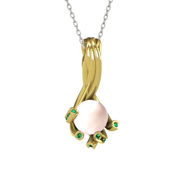 Pembe inci ve yeşil kuvars 925 ayar altın kaplama gümüş kolye (40 cm beyaz altın rolo zincir)