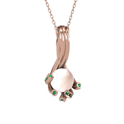 Pembe inci ve yeşil kuvars 925 ayar rose altın kaplama gümüş kolye (40 cm rose altın rolo zincir)