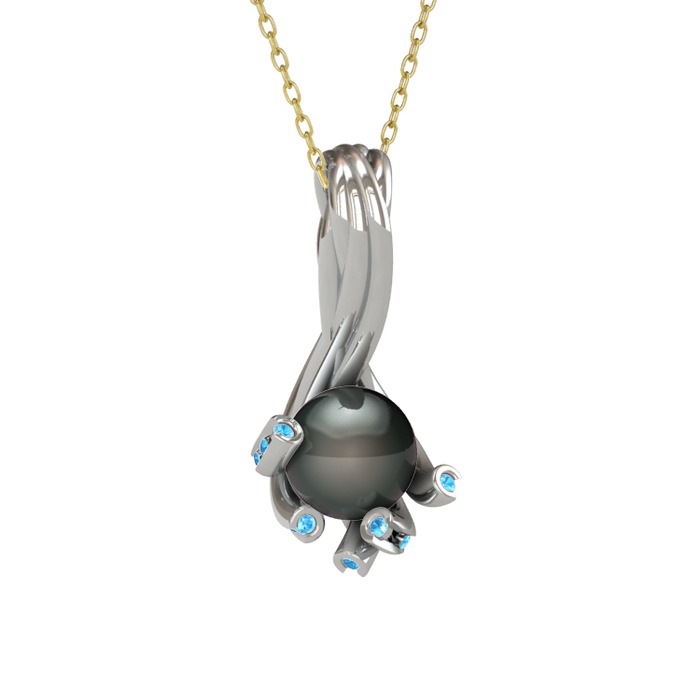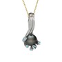 Siyah inci ve akuamarin 18 ayar beyaz altın kolye (40 cm altın rolo zincir)
