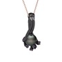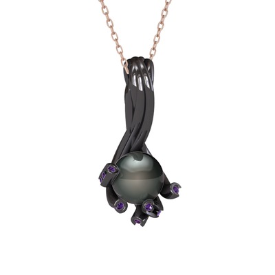 Siyah inci ve ametist 925 ayar siyah rodyum kaplama gümüş kolye (40 cm rose altın rolo zincir)