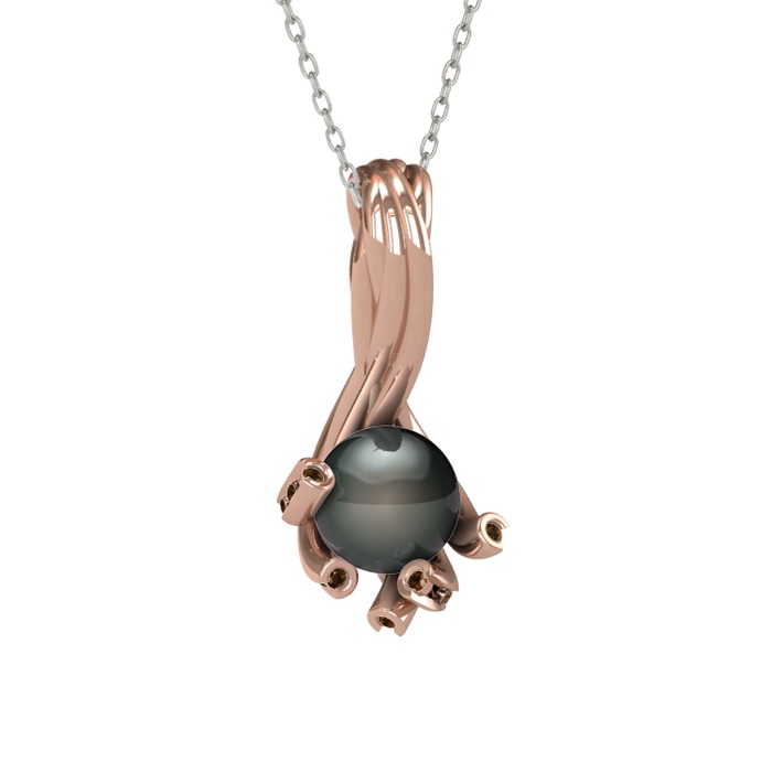 Siyah inci ve dumanlı kuvars 18 ayar rose altın kolye (40 cm gümüş rolo zincir)
