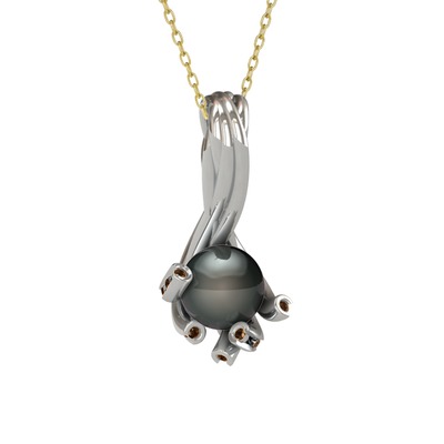 Siyah inci ve dumanlı kuvars 8 ayar beyaz altın kolye (40 cm altın rolo zincir)