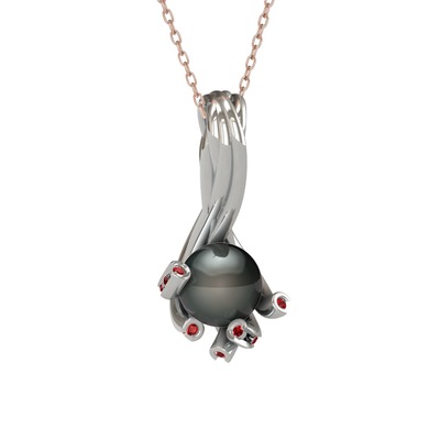 Siyah inci ve garnet 925 ayar gümüş kolye (40 cm gümüş rolo zincir)