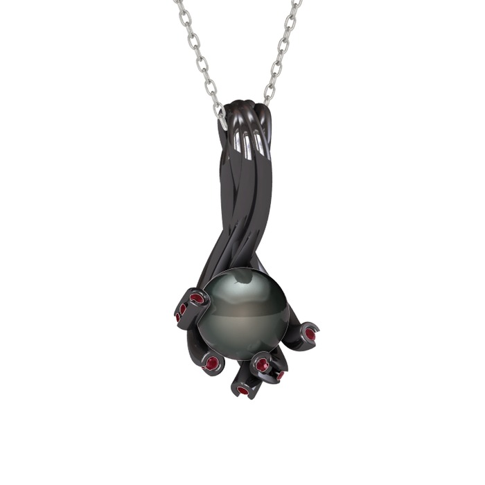 Siyah inci ve kök yakut 925 ayar siyah rodyum kaplama gümüş kolye (40 cm gümüş rolo zincir)