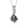 Siyah inci ve lab safir 14 ayar beyaz altın kolye (40 cm rose altın rolo zincir)