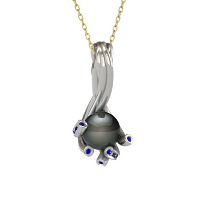 Siyah inci ve lab safir 8 ayar beyaz altın kolye (40 cm altın rolo zincir)