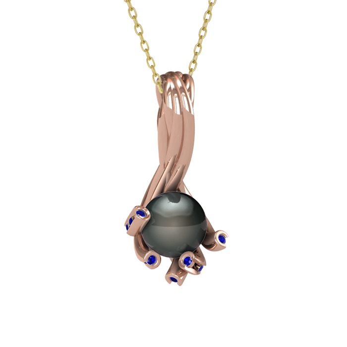Siyah inci ve lab safir 8 ayar rose altın kolye (40 cm altın rolo zincir)