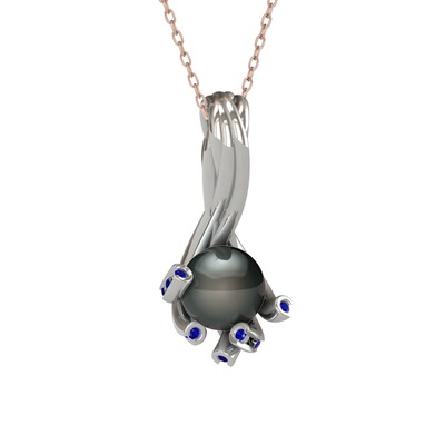 Siyah inci ve lab safir 925 ayar gümüş kolye (40 cm rose altın rolo zincir)