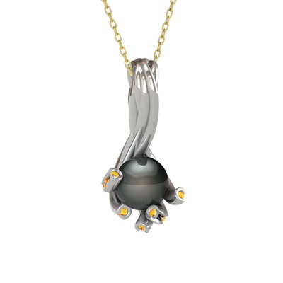 Siyah inci ve sitrin 8 ayar beyaz altın kolye (40 cm altın rolo zincir)
