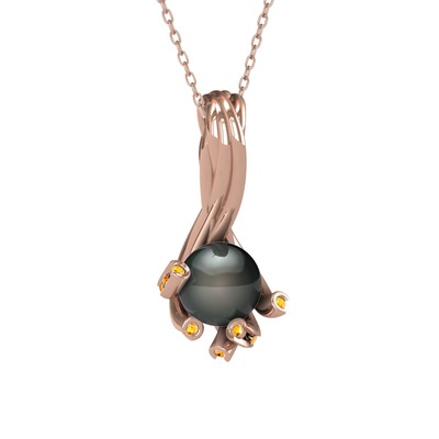 Siyah inci ve sitrin 925 ayar rose altın kaplama gümüş kolye (40 cm rose altın rolo zincir)