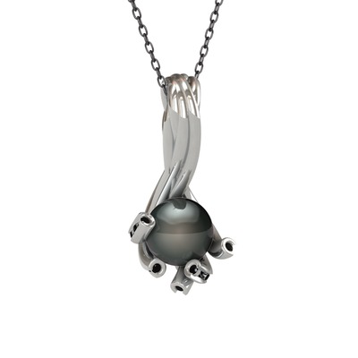Siyah inci ve siyah zirkon 8 ayar beyaz altın kolye (40 cm gümüş rolo zincir)