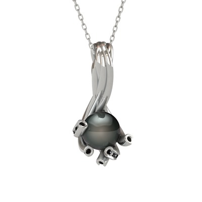 Siyah inci ve siyah zirkon 925 ayar gümüş kolye (40 cm beyaz altın rolo zincir)