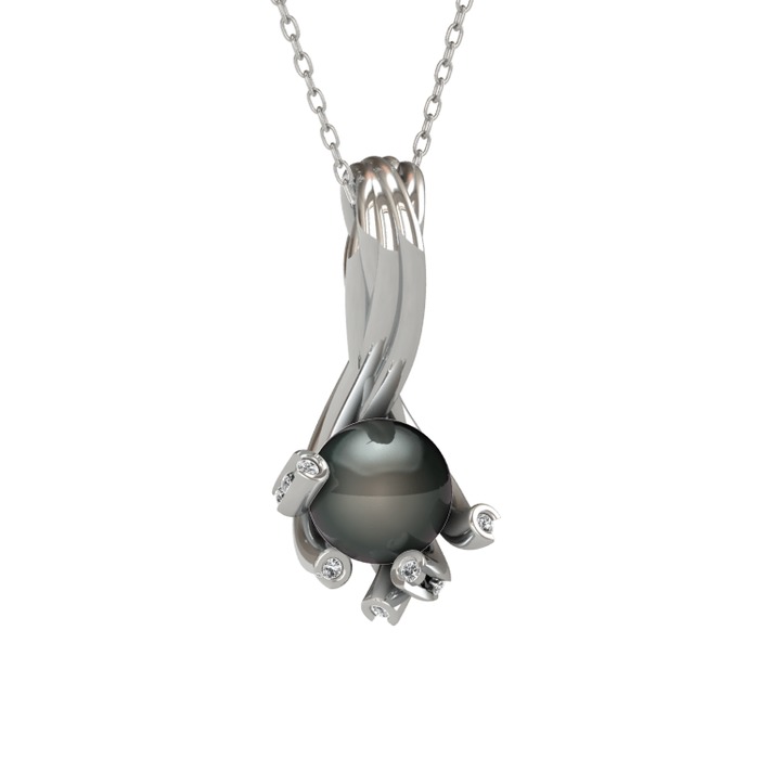 Siyah inci ve swarovski 8 ayar beyaz altın kolye (40 cm beyaz altın rolo zincir)