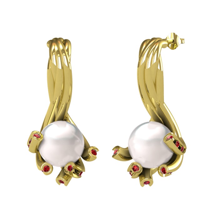 Inci ve garnet 925 ayar altın kaplama gümüş küpe