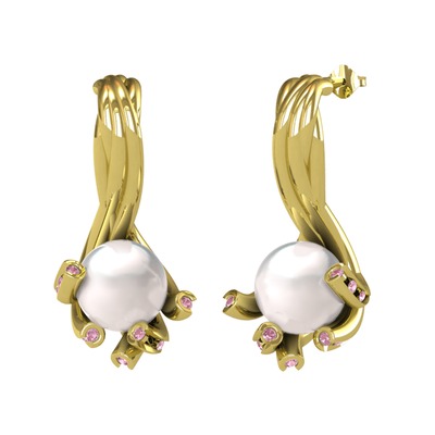 Inci ve pembe kuvars 925 ayar altın kaplama gümüş küpe