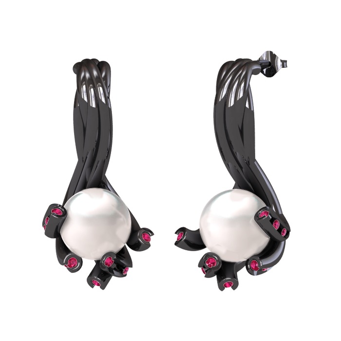 Inci ve rodolit garnet 925 ayar siyah rodyum kaplama gümüş küpe