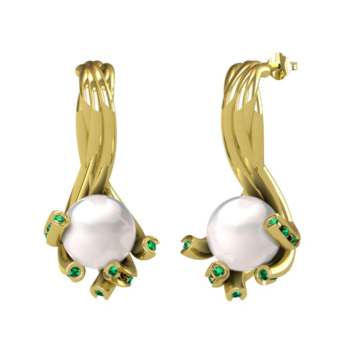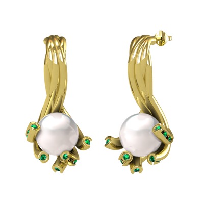 Inci ve yeşil kuvars 14 ayar altın küpe