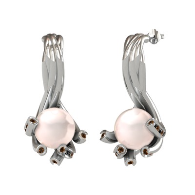 Pembe inci ve dumanlı kuvars 18 ayar beyaz altın küpe