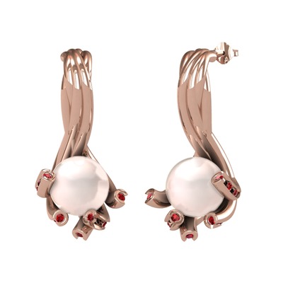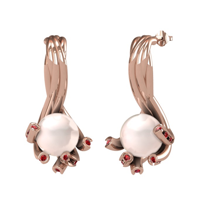 Pembe inci ve garnet 18 ayar rose altın küpe