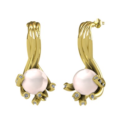 Pembe inci ve pırlanta 18 ayar altın küpe (0.45 karat)
