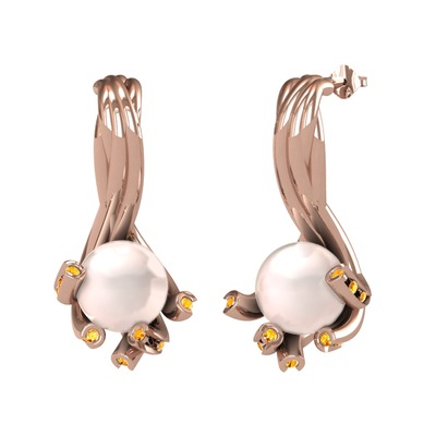 Pembe inci ve sitrin 925 ayar rose altın kaplama gümüş küpe