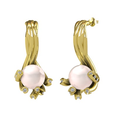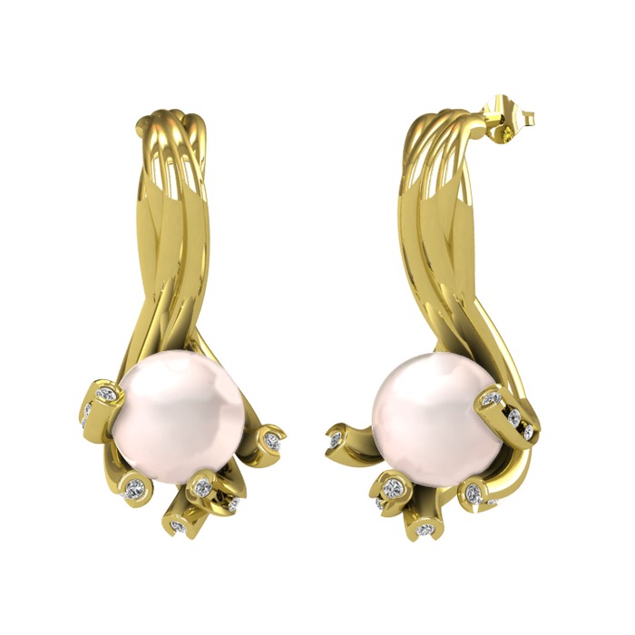 Pembe inci ve swarovski 18 ayar altın küpe