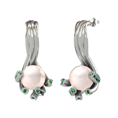 Pembe inci ve yeşil kuvars 14 ayar beyaz altın küpe