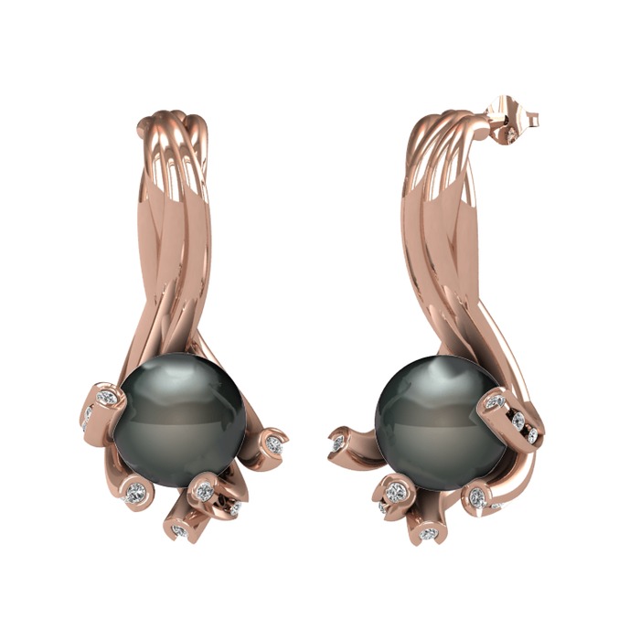 Siyah inci ve beyaz zirkon 14 ayar rose altın küpe