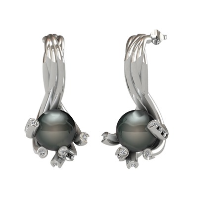 Siyah inci ve beyaz zirkon 18 ayar beyaz altın küpe
