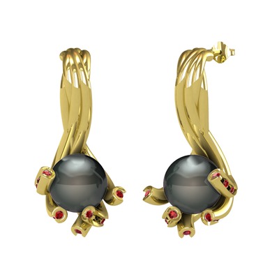 Siyah inci ve garnet 925 ayar altın kaplama gümüş küpe