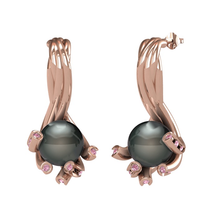 Siyah inci ve pembe kuvars 925 ayar rose altın kaplama gümüş küpe
