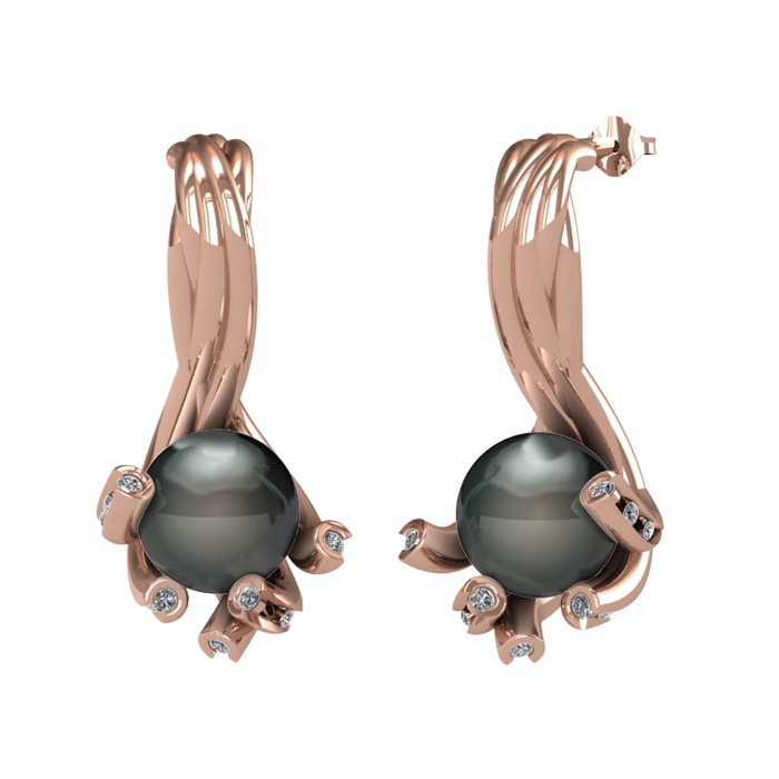 Siyah inci ve pırlanta 14 ayar rose altın küpe (0.45 karat)