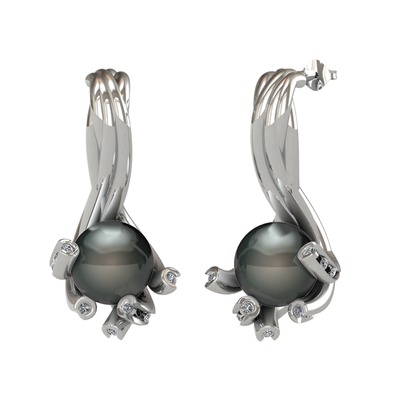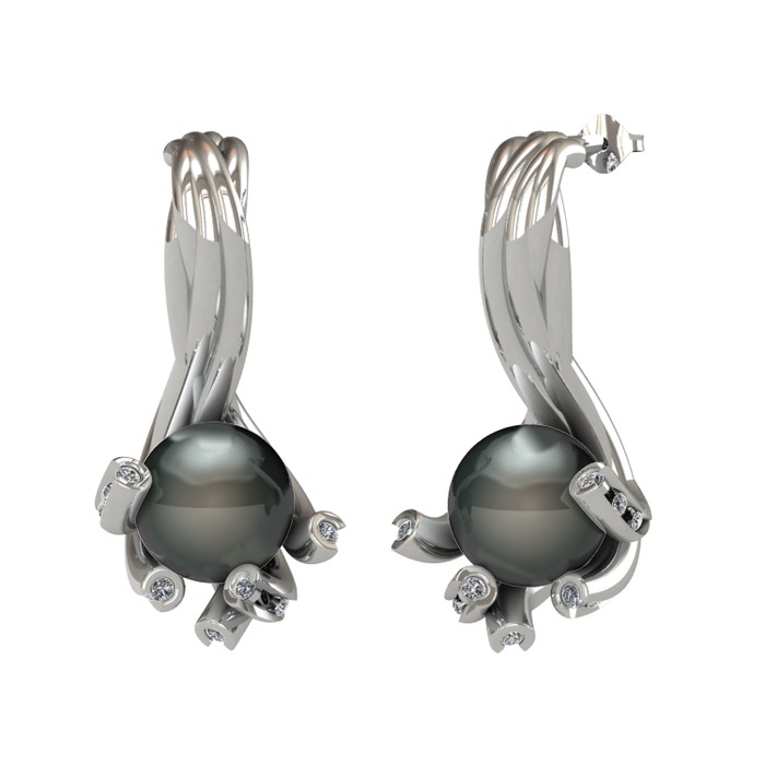 Siyah inci ve pırlanta 925 ayar gümüş küpe (0.45 karat)