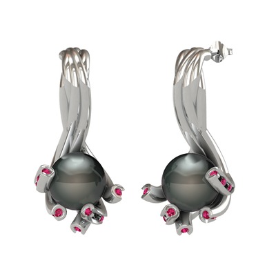 Siyah inci ve rodolit garnet 925 ayar gümüş küpe