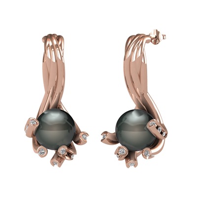 Siyah inci ve swarovski 8 ayar rose altın küpe